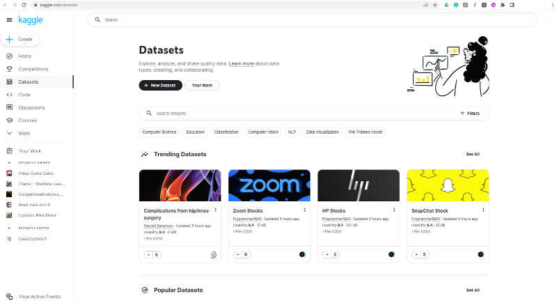 9. 캐글 (https://www.kaggle.com/datasets)
