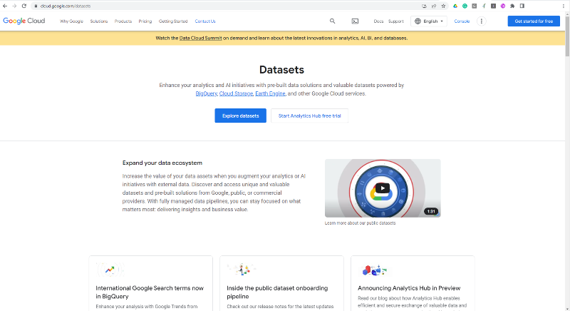 데이터 세트 및 사전 빌드된 솔루션 | Google Cloud