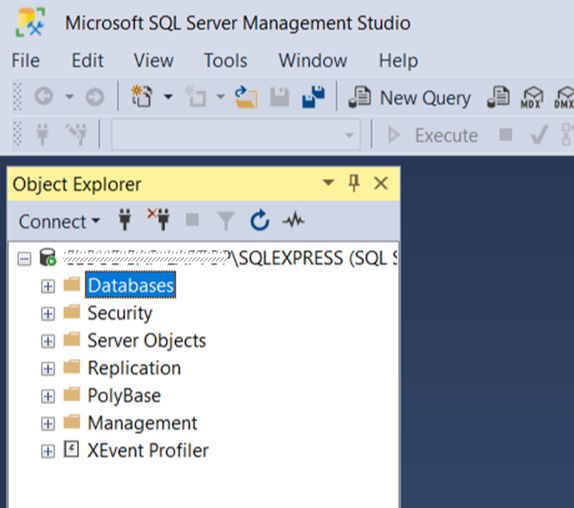 연결이 되면, 화면 왼쪽의 'Object Explorer'에 좀 전에 선택했던 서버 이름이 나온다.