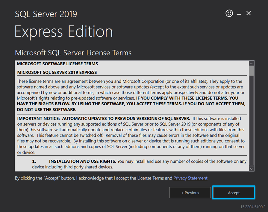 기업이 아닌 개인은 Express 버전의 MS SQL Server를 설치하면 된다. 물론 무료이다.