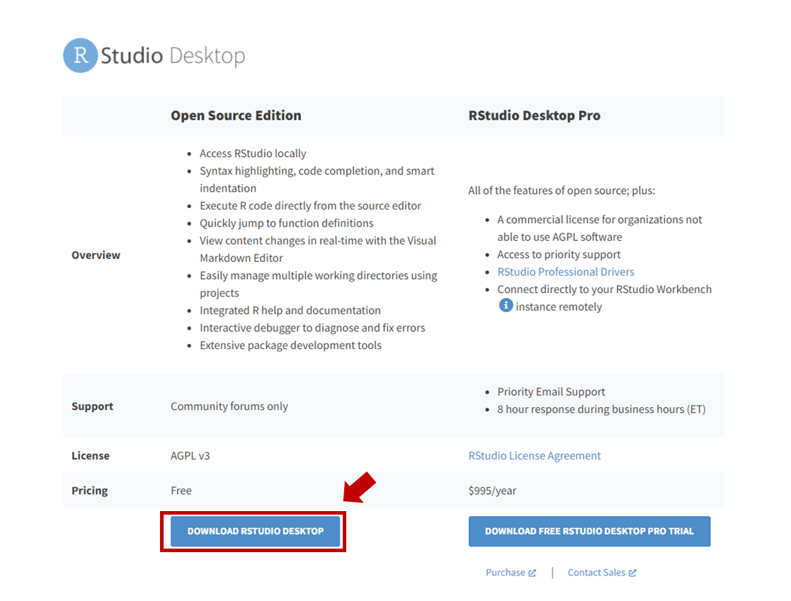 2. R Studio Desktop을 클릭한다. 공짜로 사용할 수 있는 'Open Source Edition'을 선택해도 기능에 제한이 없으므로 굳이 돈을 내면서 'RStudio Desktop Pro'를 선택할 필요는 없다.