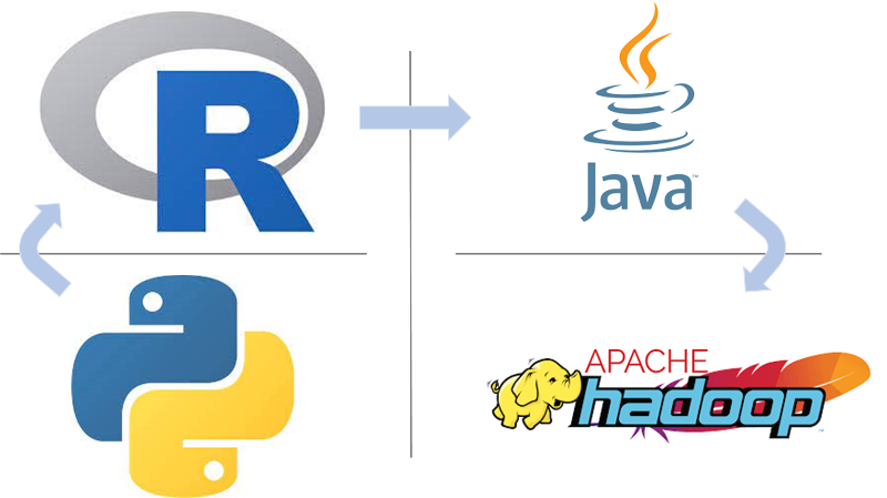 빅데이터를 위한 언어로 R보다는 파이썬을 추천하는 사람들이 많다. 텐서플로우 등 확장 가능성을 염두에 두고, 아예 프로그래밍 언어에 대한 지식이 전무하다면, 파이썬부터 시작하는게 맞을 수도 있다. 그리고 파이썬의 난이도가 더 낮아 R을 시작하기 전에 파이썬부터 시작하는 사람도 있다. 경험 상 순서는 개인의 선호도에 따라 다르다. 하지만 파이썬, R, Java, Hadoop, Apache 등을 다룰 수 있고, SQL까지 한다면 전공이나 경력에 상관없이 데이터 관련 일을 할 준비가 된 것이다.
