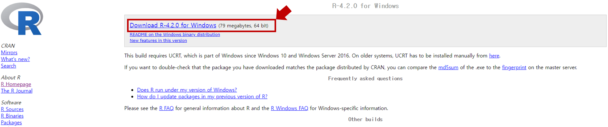 3. 'Download R-X.X.X for ~'를 클릭하면 설치 파일이 다운로드된다.